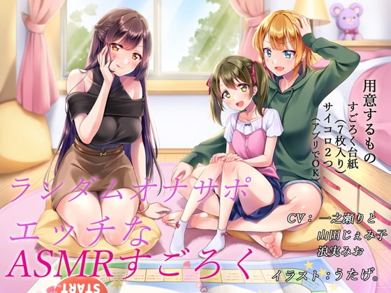 この作品は【サイコロ】と【すごろく】、PCでは【アプリケーション】を使って遊べる3人の女の子による完全ランダムなオナサポ音声作品となります!