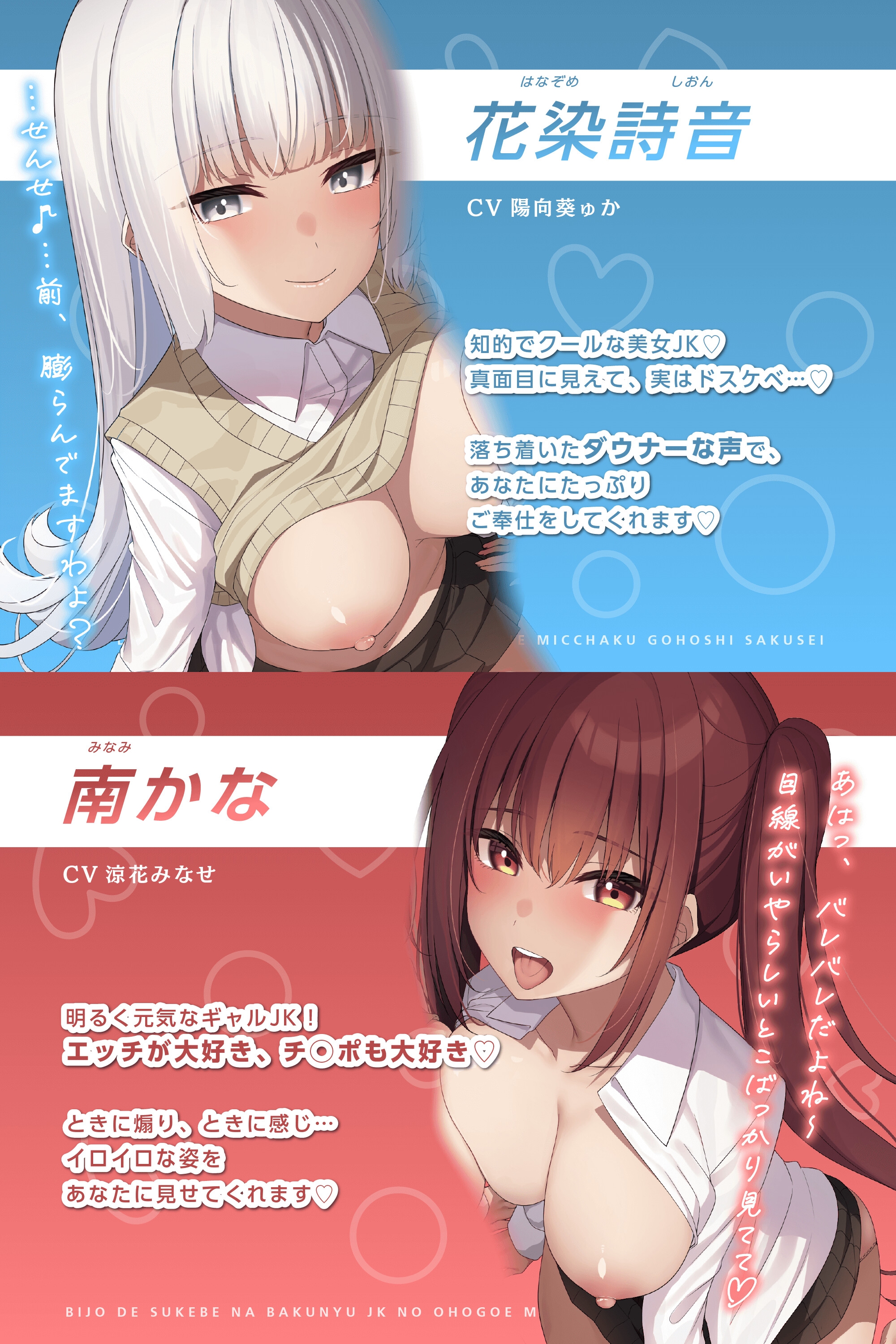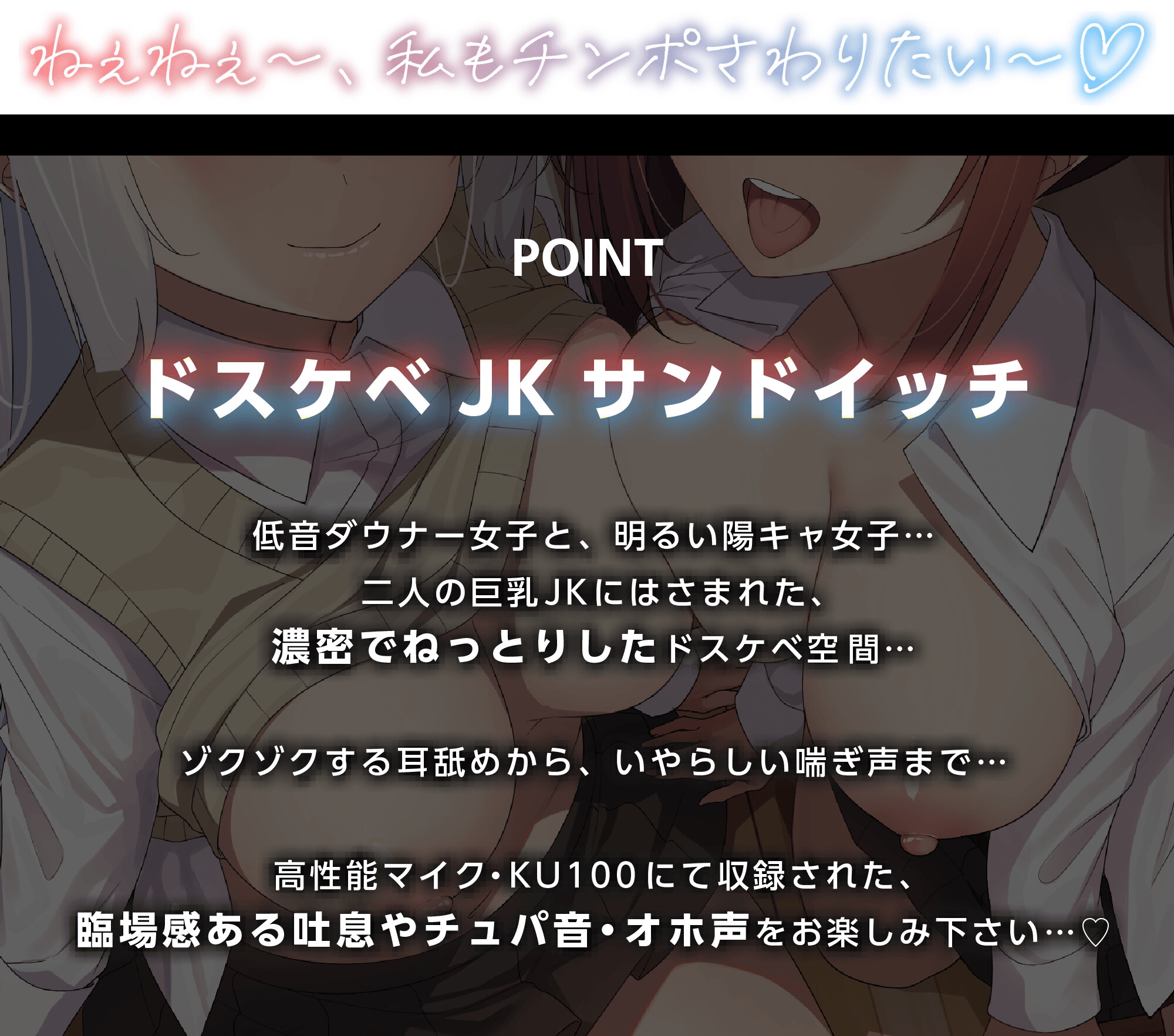 【ダウナー&ギャル】美女でスケベな爆乳JK×2の、オホ声密着ご奉仕搾精♪【KU100】|快音堂|RJ01098758