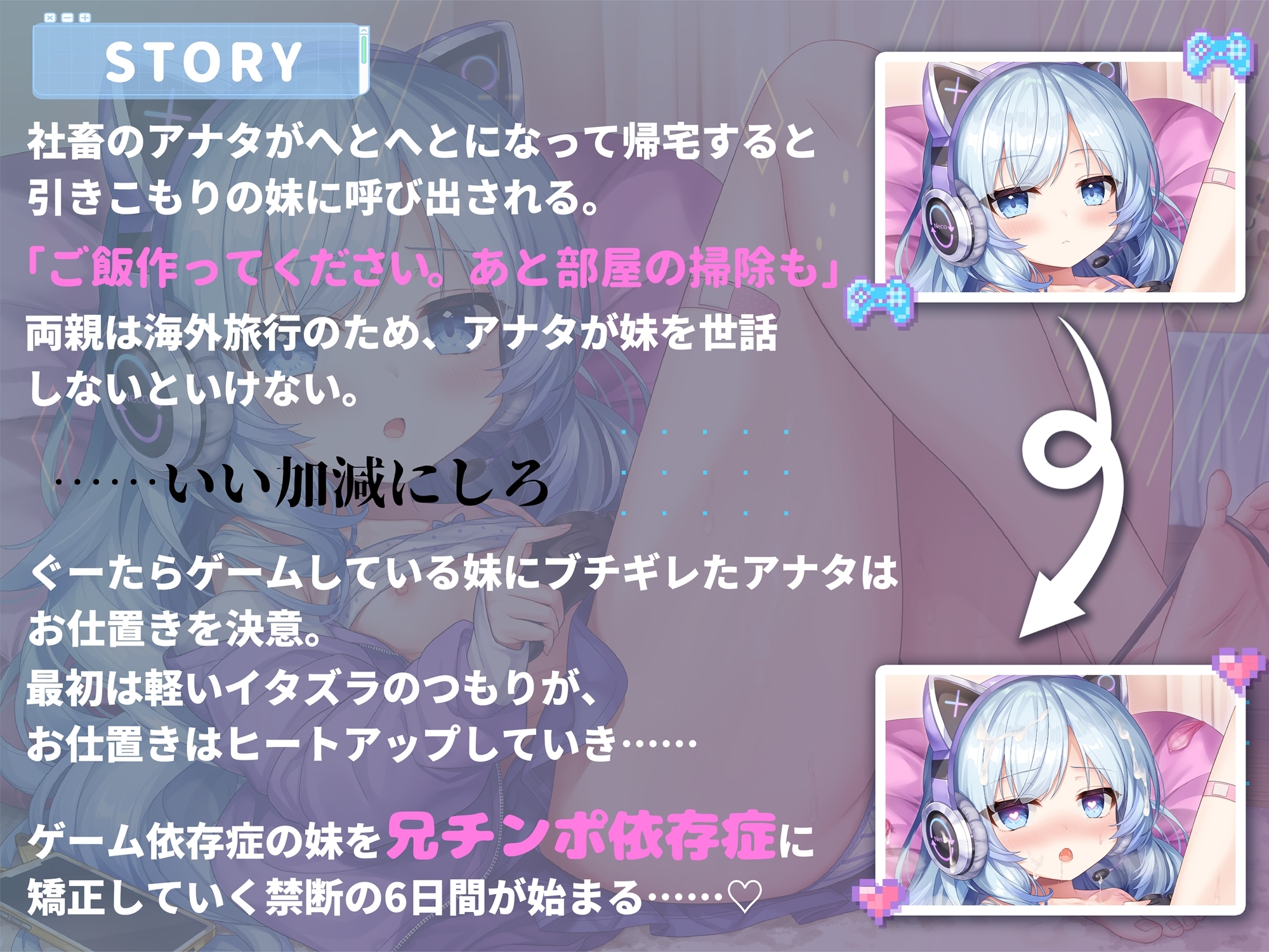 両親不在のこの6日間で、果たして妹をゲーム依存症からアナタとのエッチ