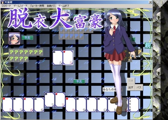 脱衣大富豪|RJ007830|草原市場 2026.04.04 今すぐゲームをプレイする 脱衣大富豪 のエロシーン 見どころ 続きの画像はこちら 脱衣大富豪の作品情報 サークル名 : 草原市場 販売日 : 2003年06月28日ジャンル : 制服 年齢指定 : 18禁作品カテゴリ : 同人作品形式 : テーブルファイル容量 : 4.18MB品番 : RJ007830価格 : 330円~ 脱衣大富豪の口コミ評判レビュー 大富豪の脱衣ゲームです。大富豪になり制服を着た女の子を脱がしてください。