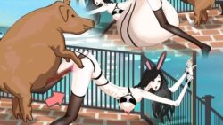 お尻/ヒップ 黒絹の女教師は学校の廊下で豚に腹が肥大するまで犯された|妊娠中の美巨人|RJ01428532
